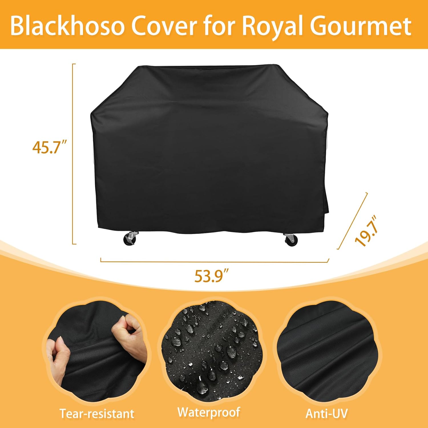 - Material: The Royal Gourmet waterproof grill cover is made of 600D high-density oxford fabric with an internal PVC coating, can protect your grill from strong winds, storms, sunlight, snow, dust, and debris, durable and long-lasting. Has good UV resistance, color fastness, waterproofing, low temperature resistance, and tear resistance functions.
