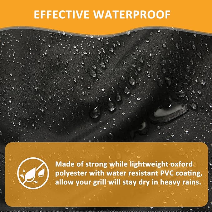 - Function:Upgrade the stitching process, add top vents on both sides, keep your grill dry in rainy days, allow moisture escape after rain, and protect your grill from rusting