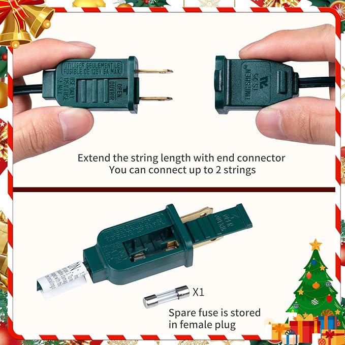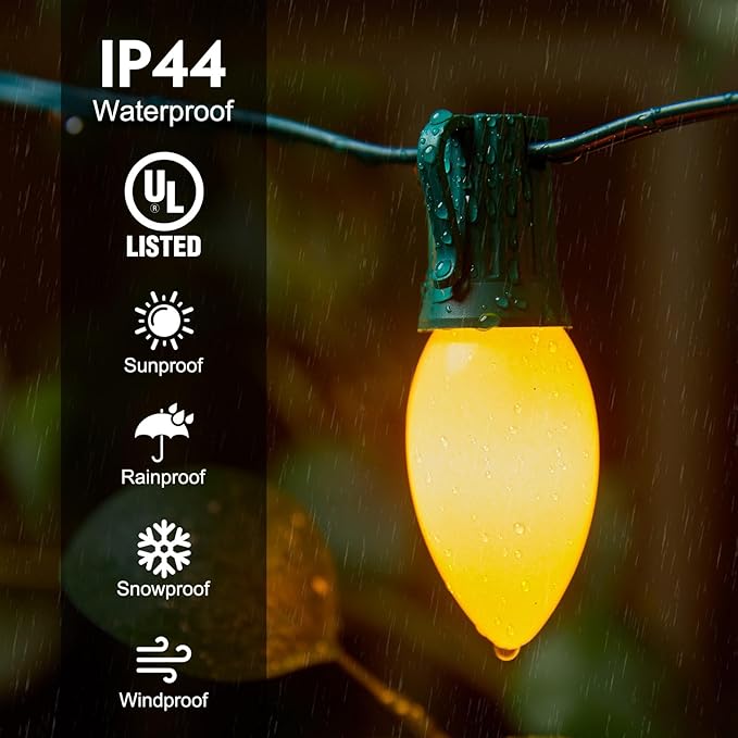 - Connectable C9 Christmas Lights: Up to 2 strands can be connected end to end to double the length and output wattage.