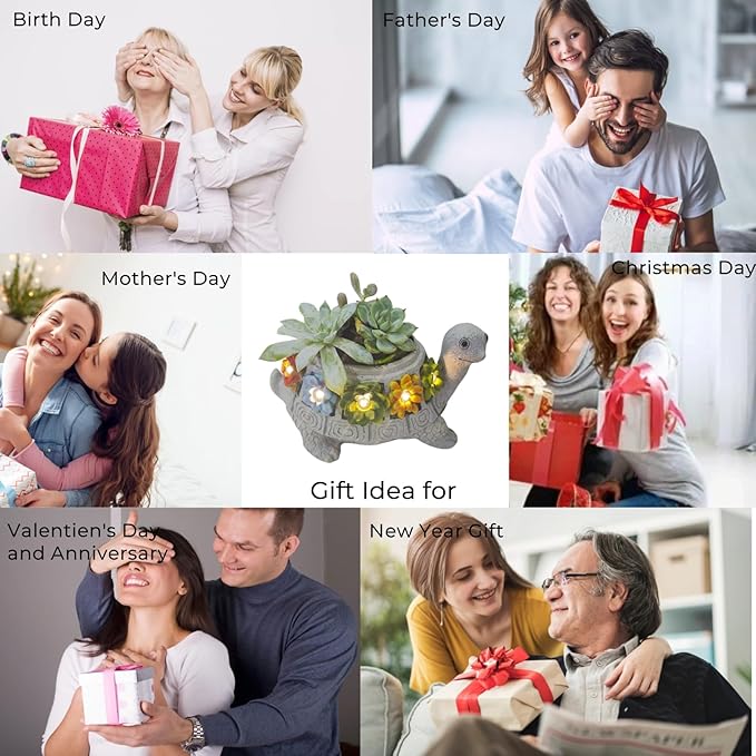 - 2.Unique Design and Multiple-Function,This garden statue light is designed with a turtle with Succulent,it is be a statue on the day, but a light on the night.but it is different from traditional status lights, you can plant real succulent or other plants in it,just makes it became one of your garden part.(Not Including the Succulent)