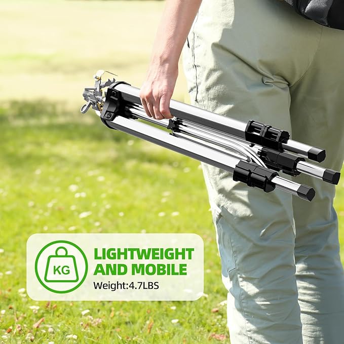 - Heavy Duty Metal Construction: The tripod is made of strong and durable zinc alloy, and the impact sprinkler head is made of brass so that it can withstand harsh environments without breaking, rusting or corroding. The triangular structure gives it an excellent anti-tipping feature, making it stable even on slopes