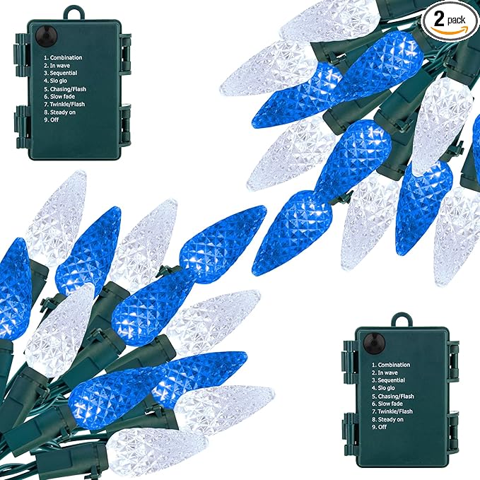 - 【 8 Lighting Modes 】- There are 8 different modes for the C6 Christmas string lights, including waves, sequential, slow glow, flashing, slow fade, twinkle, and combination, as well as standard on and off. It can be controlled by pressing the button on the battery box. Ideal for your everyday decor as well as holiday decoration.