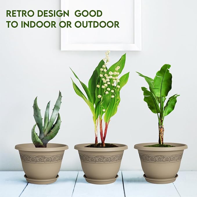 - 🌿CLASSIC DESIGN - With trendy colors and a timeless aesthetic, these decorative pots seamlessly blend into any indoor or outdoor environment. The UV-resistant plastic ensures long-lasting color retention and prevents cracking or fading over time.
