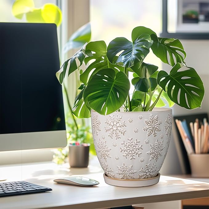 • Materials: This 8 inch plant pot is made of high-temperature ceramic material, durble and solid. This ceramic planter can be used indoors and outdoors for a long time, without worrying about fading, warping or rusting