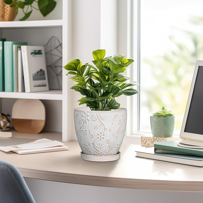 - Stylish Appearance: Our ceramic plant pot has a white main colour, a beautiful embossed petal and leaf pattern on the surface, elegant appearance making it ideal for home decor, garden decor and office decor