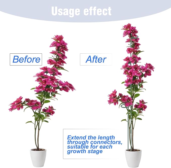 - MULTIFUNCTIONAL DESIGN :Plant support poles can be combined into three sizes, 12 inches for a standalone plant support pole, two sections combined for a 24 inches tall plant support pole, and three sections combined for a 36 inches tall plant support pole. This design allows the plant supports to grow longer as the plant grows, and the plant clips allow you to use them in a variety of situations to create a better look.