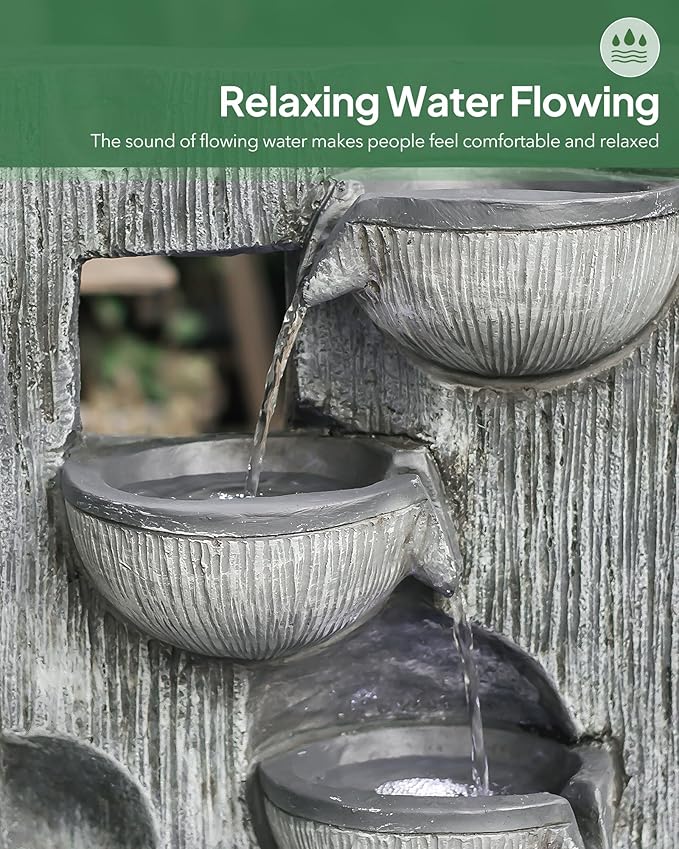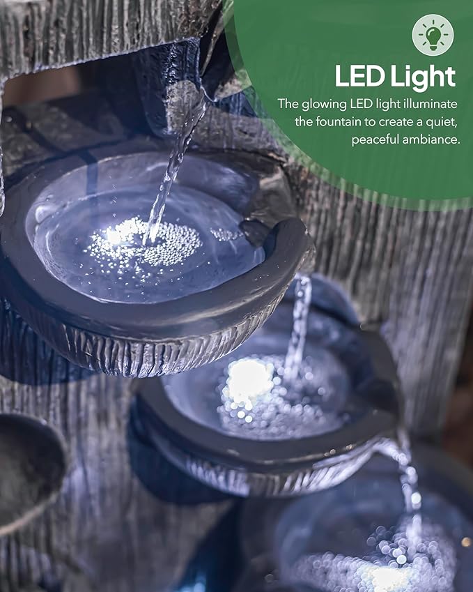 - 【Soothing Water Flow】 The water flow of this modern fountain flows from the four-tier bowl to the bottom, creating a sound similar to a real waterfall fountains that instantly relaxes you. Additionally, our pump has been upgraded, allowing you to adjust the water flow rate based on the desired sound.