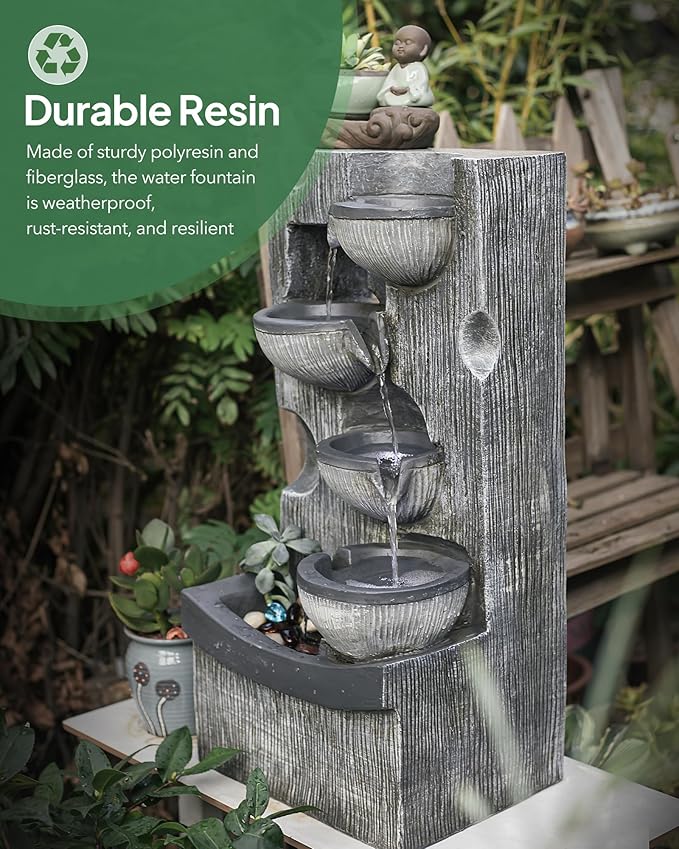 - 【Durability】This outdoor fountain is made of durable resin with a natural look, realistic texture, very lightweight, weather and rust resistant, sturdy, and durable.
