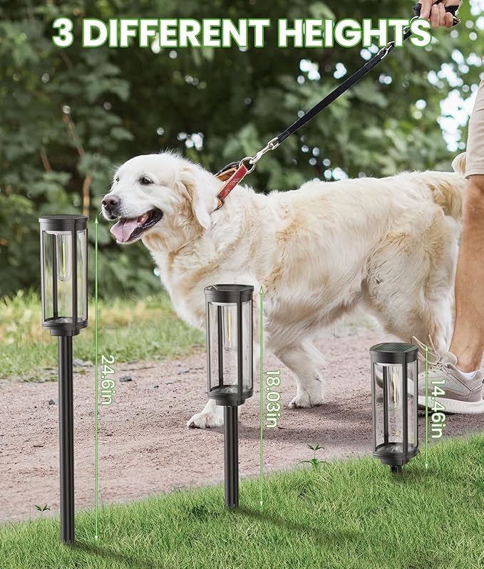 - ALL-WEATHER RESISTANT & EASY TO INSTALL: The outdoor solar yard lights boast a high waterproof level of IP65, ensuring resistance to all types of weather conditions, including rain, snow, frost, and sleet. Installation is effortless; simply connect the stake, pole, and solar light, then insert the solar lights into the ground or lawn where they can receive ample sunlight for optimal lighting.