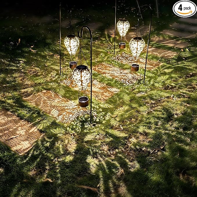 - 【Multiple Uses】This hot air balloon solar light can be hanging almost anywhere, such as from a tree, porch, or patio—ideal for adding a warm ambiance to your outdoor space. We also include a shepherd hook, allowing you to install the lantern in your lawn, backyard, flower bed, alongside a path, or even use it as a pathway light on your driveway or walkway. Perfect for both lighting and decoration.