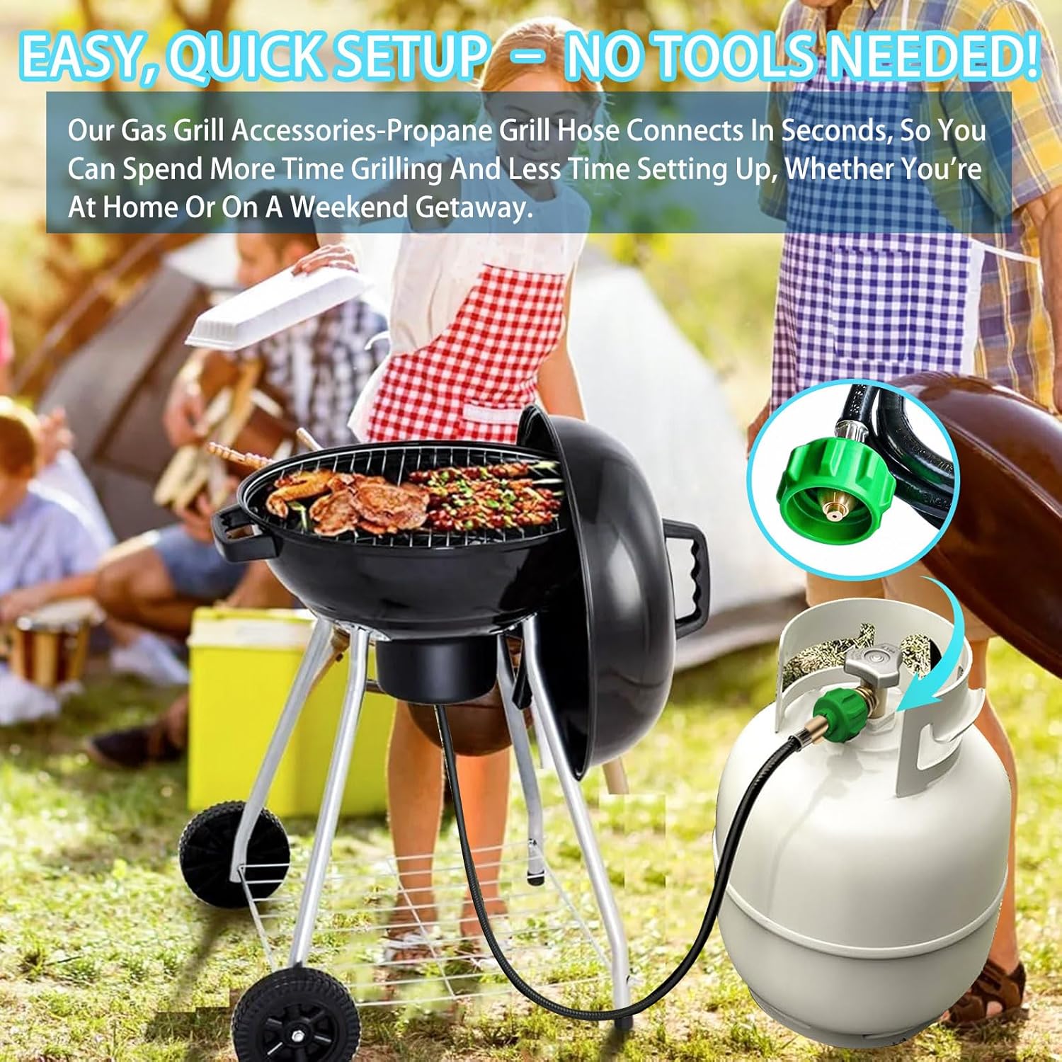 - Propane Adapter Hose Grill Like a Pro with Full-Size Tank: Connects portable grill to a 20 lb. fuel tank for added versatility for your portable grill, Take your grill game to the next level. Our propane hose adapter allows you to cook more food for more people without running out of fuel—perfect for backyard parties or tailgates! at once perfect for camping, tent heating etc. heating needs or outdoor picnics.