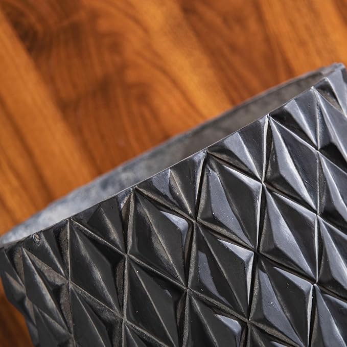 - [Unique Design]:The cylindrical cement planters used the Black lozenge pattern designs, giving the planters a unique aesthetic appeal and adds unique visual effect to the outdoor space