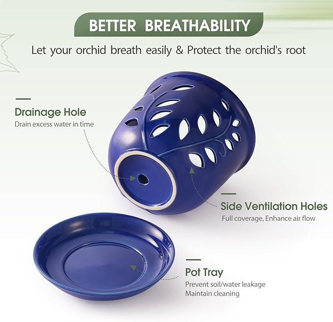 - Premium Ceramic Material: Crafted from high-quality ceramic, these orchid pots for repotting are resistant to fading, deformation, and rust compared to other materials. The durability can withstand sun exposure, wind, and varying temperatures, providing a stable environment for your beloved plants