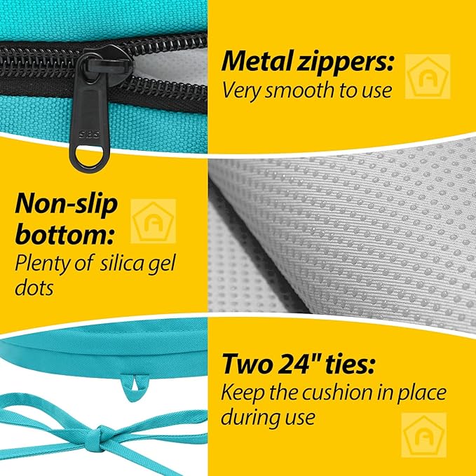 AAAAAcessories Outdoor Seat Cushions for Chairs, Waterproof, Fade-Resistant Patio Furniture Replacement Cushions, 17" x 16" x 2", Set of 2, Turquoise