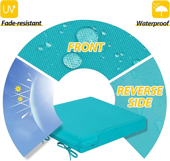 AAAAAcessories Outdoor Seat Cushions for Chairs, Waterproof, Fade-Resistant Patio Furniture Replacement Cushions, 19" x 19" x 3", Set of 2, Turquoise