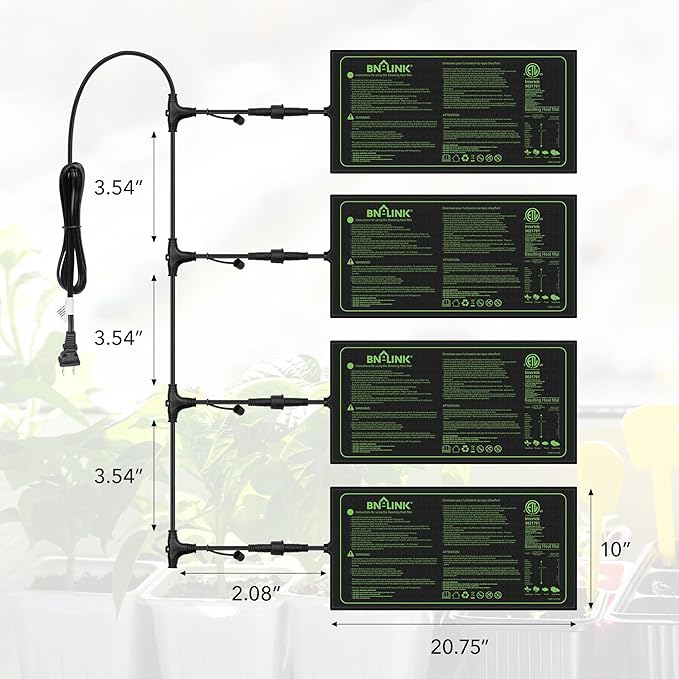 - EASY STORE AND CLEAN: The supple nature of BN-LINK Seedling Heat mat makes it easy to store, simply roll up the mat and wrap the cord around it. When it’s time to start seeds again, it will roll out easily and perform its task.The mats are easy to wipe clean with just a damp cloth and will resist rusting and corrosion.