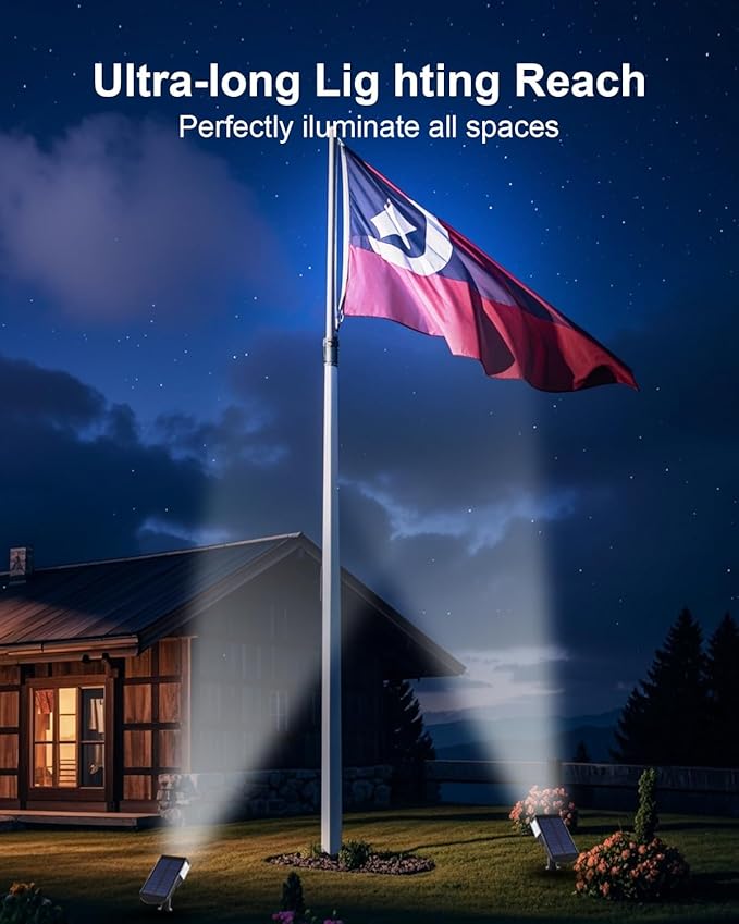 - 💦𝐀𝐝𝐯𝐚𝐧𝐜𝐞𝐝 𝐖𝐚𝐭𝐞𝐫 𝐑𝐞𝐬𝐢𝐬𝐭𝐚𝐧𝐜𝐞, 𝐄𝐧𝐝𝐮𝐫𝐢𝐧𝐠 𝐒𝐭𝐫𝐞𝐧𝐠𝐭𝐡:The solar powered spotlights feature an integrated, exquisite design that outperforms split-type solar lights, especially in harsh weather conditions like storms, showcasing superior waterproof capabilities. Crafted with durable ABS material and equipped with a 2000mAh high-capacity battery, our fixtures provide a long-lasting and reliable lighting experience for your outdoor spaces.