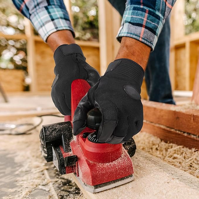 - Leather Work Gloves: The back of the hand is crafted from neoprene to keep you warm and absorb sweat, while the thick yet supple leather ensures both protection and dexterity