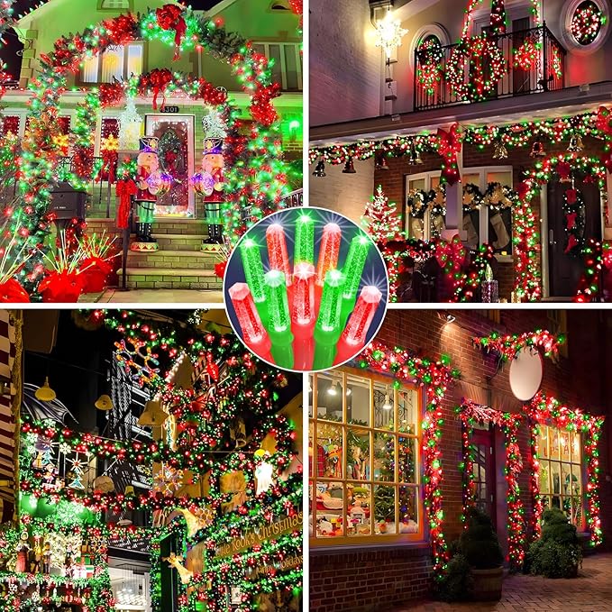 - Timer and Memory Function: Set your Red and Green string lights to turn off during the day, saving energy and reducing bills. The memory function keeps your last setting, so your outdoor Christmas lights are always ready to shine just as you like