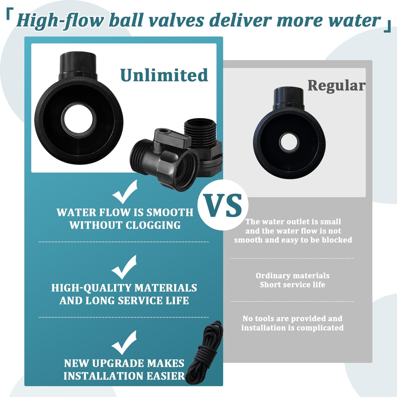 - The Set Includes: You will receive 4 pcs 3/4”Garden Hose Shut Off Valve,4 pcs 3/4”GHT Bulkhead Fitting,4 pcs rubber gasket,2 pcs thread sealing tape, and 1 traction rope