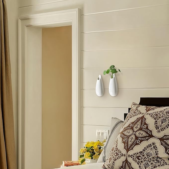- Minimalist Design:These white wall-mounted vases feature a minimalist style that is perfect for both indoors (such as a hallway, staircase, or a cozy spot near a sunny window) and outdoors (such as a porch, patio, or garden wall)