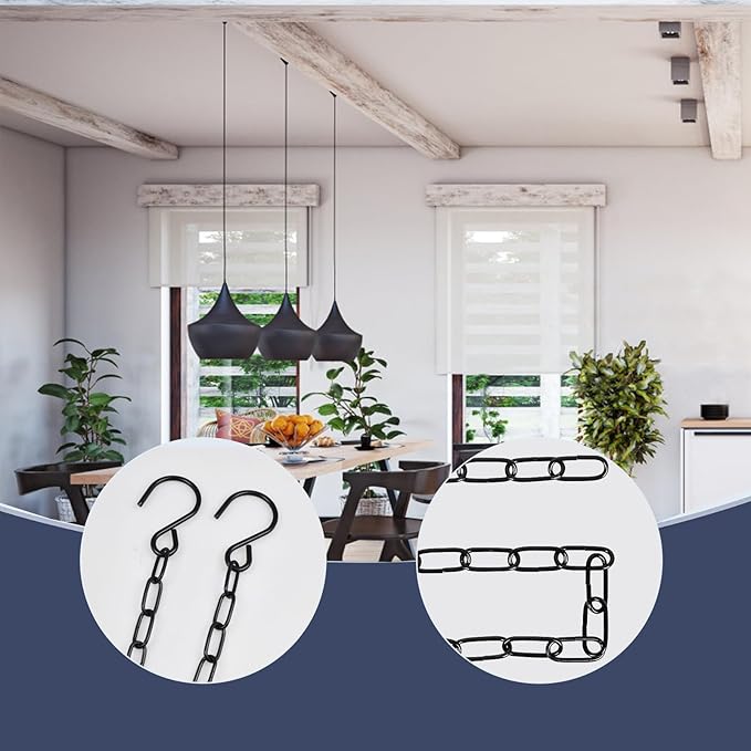 - Durable Material: These hanging chains are made from heavy-duty steel with a black rust-resistant coating for long-lasting performance in all environments.
