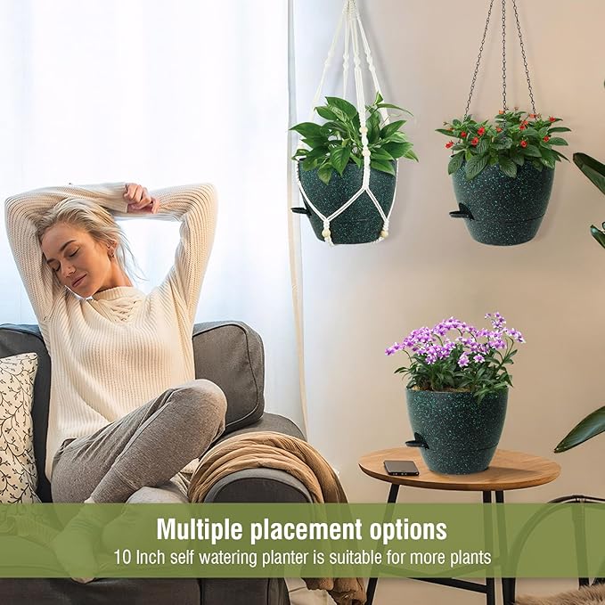 - 【Convenient】Self watering hanging pots with deep reservoir makes it easy for when go on vocation that no need someone to come over water plants and flowers. and these hanging baskets are easy to install and suitable for hanging in various locations such as balcony, window, porch and garden.