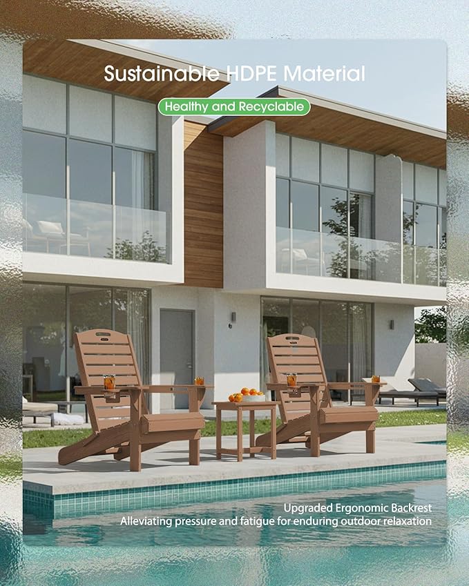 - Weather-Resistant: Made of high-quality HDPE material with wooden texture, SUUNYN sturdy adirondack chair offers excellent weather resistance, resisting fading, splitting, cracking, chipping, peeling, and rotting in harsh conditions. Plus, its easy-to-clean surface and low maintenance