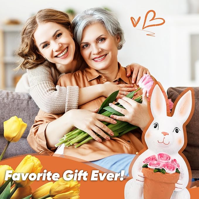 - Perfect Gift for Loved Ones: Searching for a unique gift for parents, friends, or housewarming parties? This charming 11.8inch white rabbit statue, cradling a flower basket, is a delightful and thoughtful present that brings joy to any outdoor space.