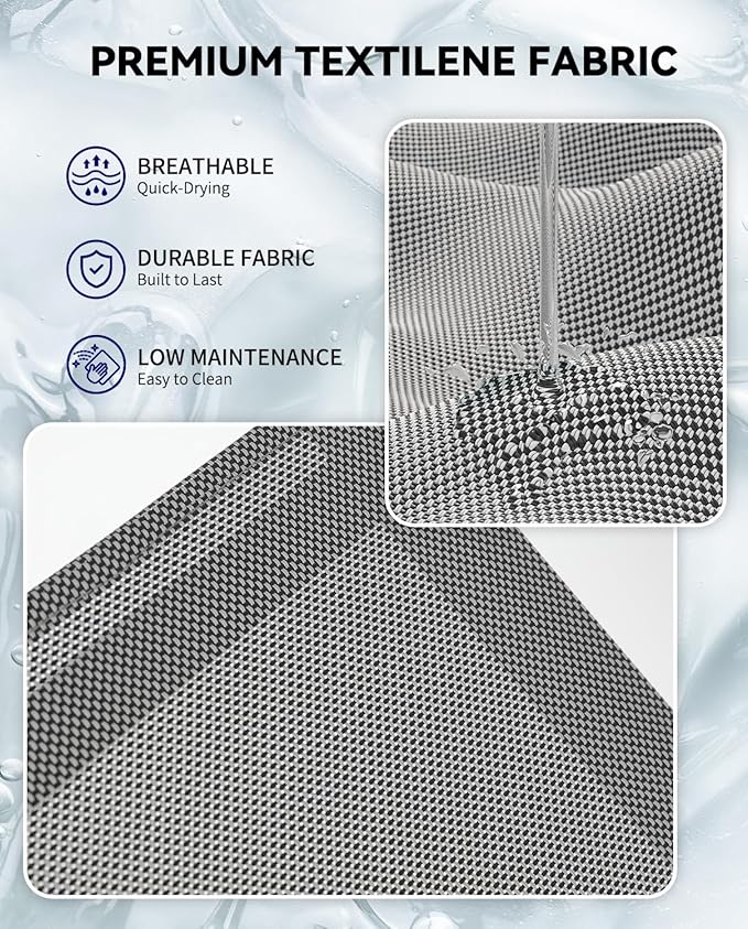 - 【ALL-SEASON COMFORT】Crafted from premium Textilene fabric, our outdoor chaise lounge is weather-resistant and quick-drying, perfect for all-season use. Its flexible and breathable design keeps you cool on hot days, while the easy-to-clean surface requires only a quick wipe with a damp cloth for effortless maintenance and lasting comfort