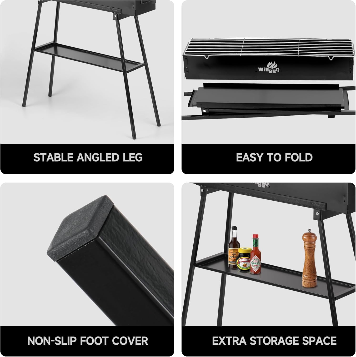 Charcoal Grills Commercial Quality Portable Multiple Size Hibachi BBQ Lamb Skewer Folded Camping Barbecue Grill for Backyard Party Picnic Travel Outdoor Cooking Use(31.6x7.1x5.1 inch),BLACK