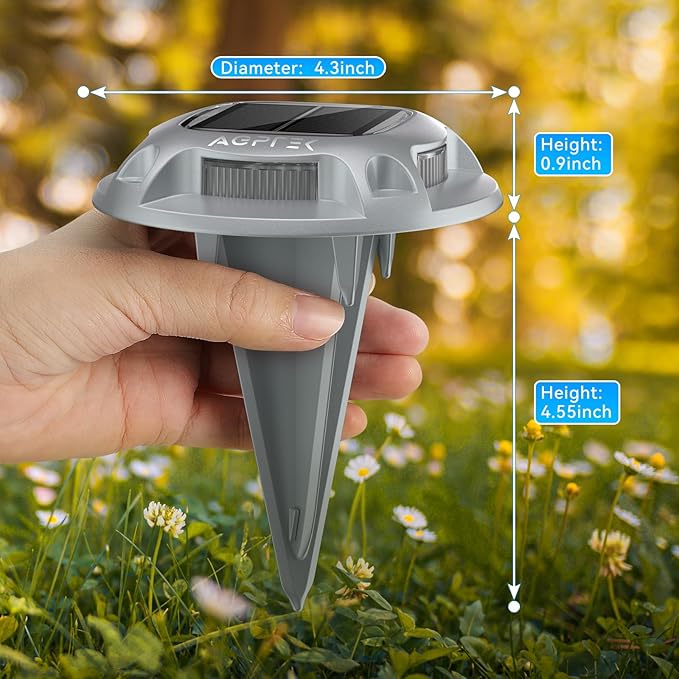 - 【2 Colors In 1】 Blue Light & White Light, Two Color Options for you to choose. Unlike other single color solar deck lights, dual-color driveway lights let you can freely choose color to fits different needs, like holiday decoration or daily used.