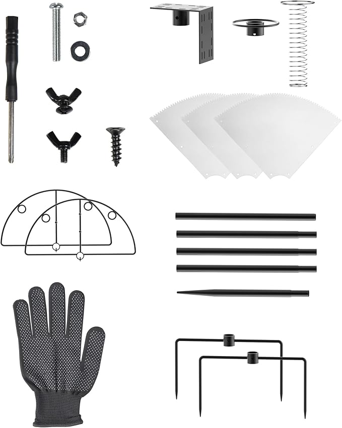 - 【Easy Installation】 This 90 inch bird feeder stand includes 6.5-inch 5-prong bases, 6 connecting poles, an L-shaped plate, and a squirrel baffle. The slip-in connection makes assembly as easy as stacking blocks, while the wing nut design enables tool-free, adjust the baffle 8-10" above ground to stop squirrels, one-person setup in about 30 mins. This user-friendly design ensures everyone from young enthusiasts to seniors can assemble effortlessly.