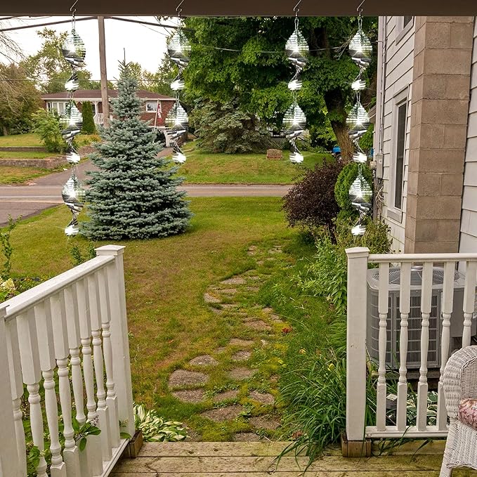 - 【Easy to Assemble】bird deterrents wind spinner is very easy to install.According to the instructions we provide,remove the protective film from each wind spin surface,rotate it to the appropriate angle,and finally connect the bird scare discs together with a 360 ° swivel hook and small hook.You can combine bird deterrents to create a variety of decorative effects