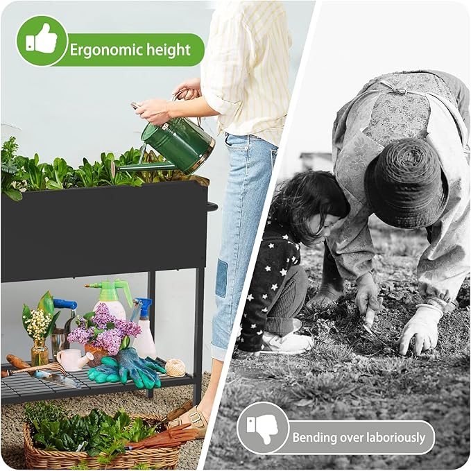 - 【Ergonomically Designed】: Standing at 31.5 inches off the ground, the outdoor garden bed ensures that you can tend to your plants comfortably without bending over, reducing strain on your back and knees. Gardening has never been easier or more enjoyable