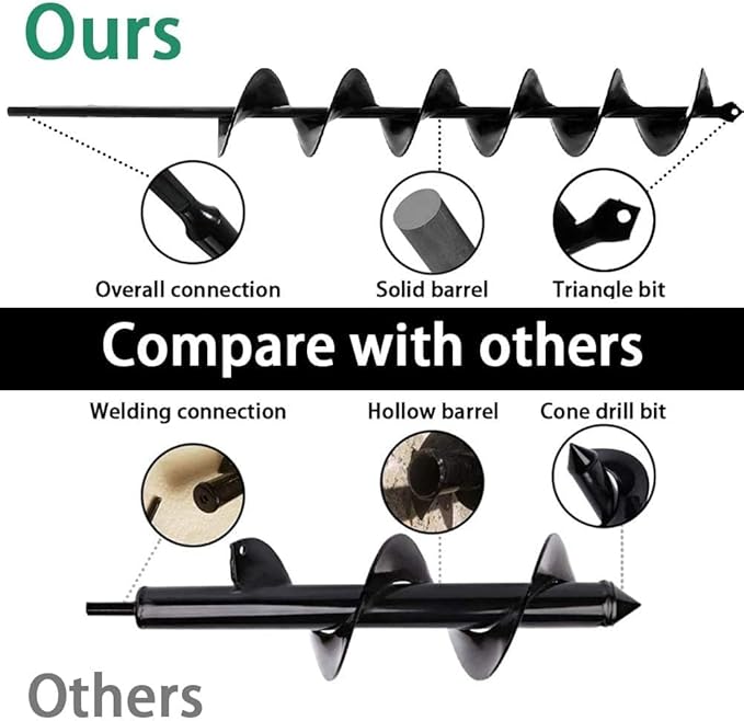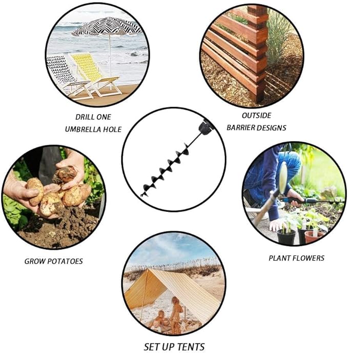 - 【Multi-purpose Tool】Our long auger drill bit for planting is a versatile tool designed for a wide range of applications. Perfect for planting shrubs and trees, it’s also ideal for installing larger planters, beach umbrellas, mailboxes, fences, and trellises. This multi-functional bit makes complex gardening and installation tasks easier and more efficient, making it a must-have for serious gardeners and DIY enthusiasts alike.