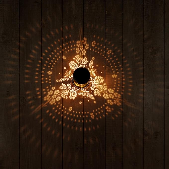 - 【Exquisite Garden Decoration】 - The hummingbird solar lantern projects distinctive patterns in dim surroundings, creating a magnificent and cozy atmosphere. It injects vitality and fun into your garden, luring family and friends.With its unique hollow-out design and elegant antique bronze hue, it has an artistic touch, making it perfect for decorating gardens, backyards, secluded corners, outdoor areas, and walkways
