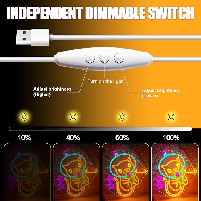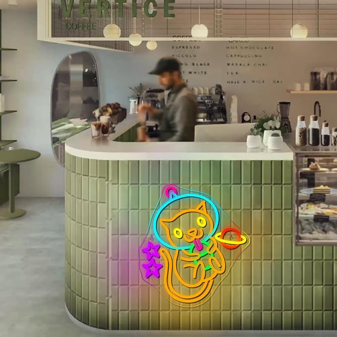 - Vivid Color Display: The cat bubble tea neon light illuminates in a beautiful mix of colors, including soft pastels and bright tones, making it an eye-catching piece that adds a lively, cheerful ambiance to bedrooms, living rooms, cafés, or even bubble tea shops.