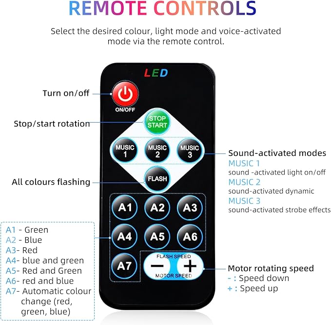 - Multifunctional New Year's Party Light: This New Year's Eve decorative light adds a wonderful magical charm to your party! It has 3 voice-activated modes, 7 light modes, rotating speed control function, you can easily switch between different light themes to create a colourful party atmosphere. It is an essential party decoration accessory.
