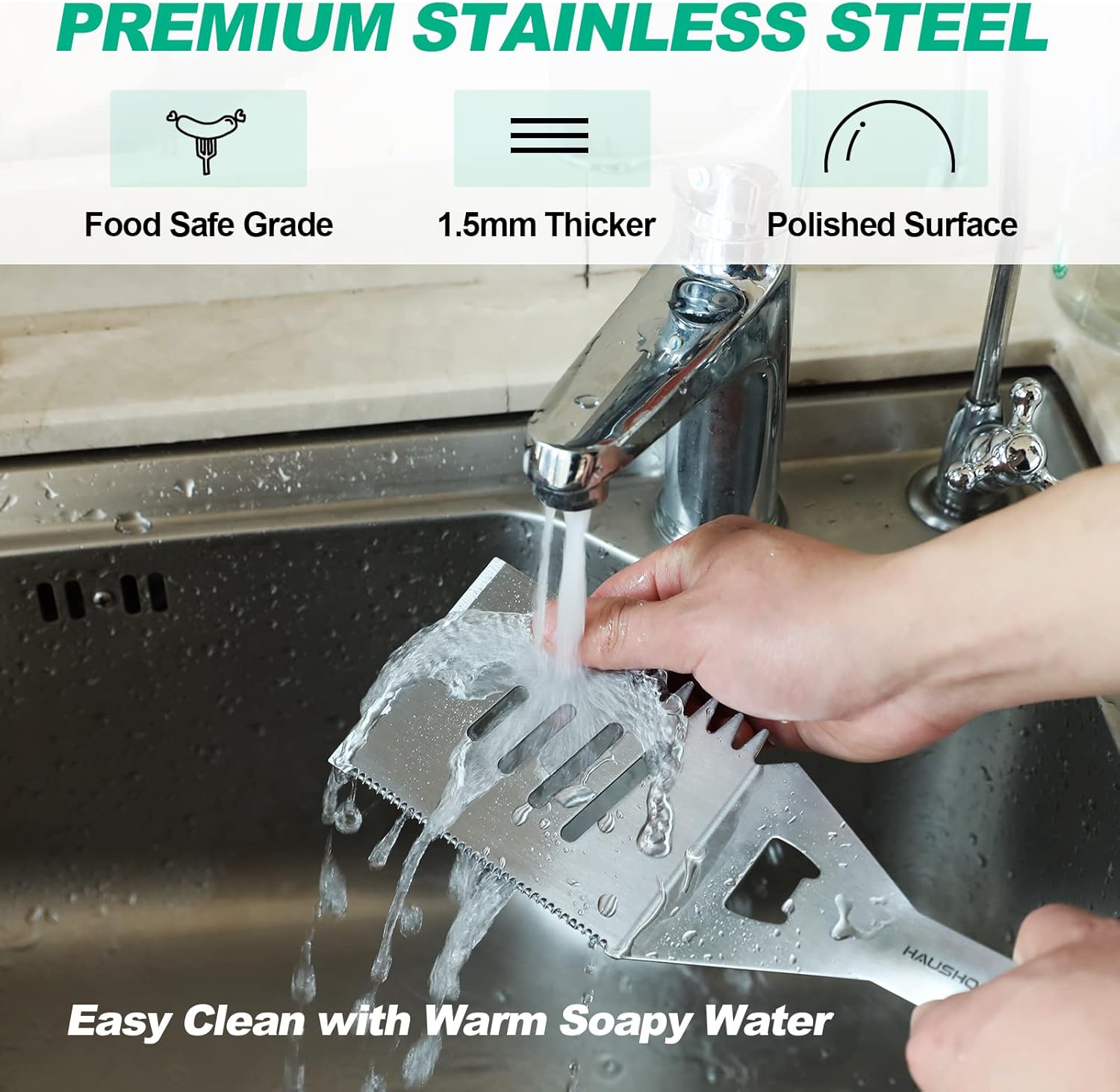 HAUSHOF Large Grill Accessories Heavy Duty BBQ Set Gifts for Men/Women - Premium Stainless Steel Spatula, Fork & Tongs, Barbecue Utensils Tool Kit Gift for Grilling Lover Outdoor (Color Box)