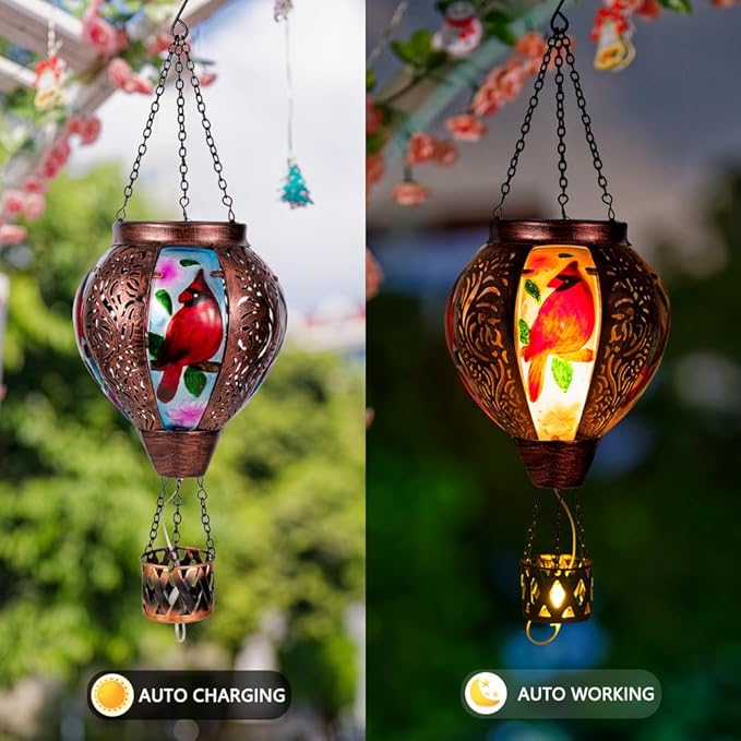 - Solar Lanterns Perfect Size: The product package contains 1 Cardinal hot air balloon solar lanterns;Hanging solar lantern 5.5 "wide *18" high,easy hanging and durable,Perfect for various outdoor spaces like gardens,front doors, patios,pathways,yards,courtyards,pavilions,windowsills,or party decor