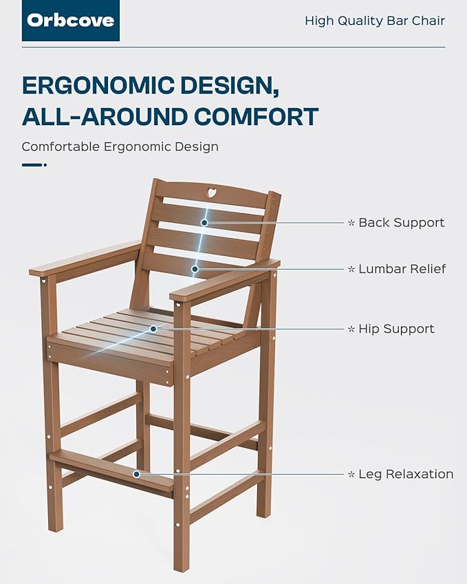 - Durable All-Weather Design: (Please note!!!Your order consists of two or three separate packages, which may be delivered at different times.) Crafted from HDPE with a natural wood grain finish, Orbcove bar table and chairs set withstands sun, rain, and wind without fading or cracking. Ideal for deck furniture, backyard furniture, or porch furniture, it’s perfect for year-round outdoor living.
