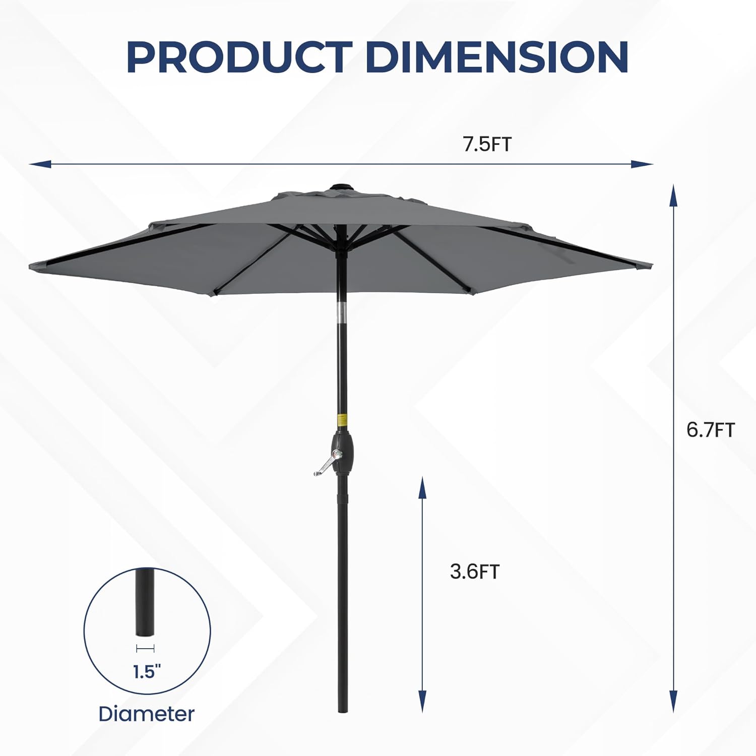Aok Garden 7.5 ft Patio Umbrella Outdoor Market Umbrella Tilt Button and Crank 6 Ribs for Deck Lawn Pool& Backyard