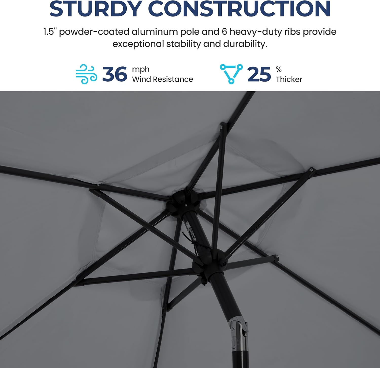 - FADE-RESISTANT: Patio umbrella is made of 100% polyester fiber, waterproof and UV resistant. Garden umbrella 200g/sqm polyester sombrillas de patio can last for many years with colorfastness of Grade 4 min. at 400 hours