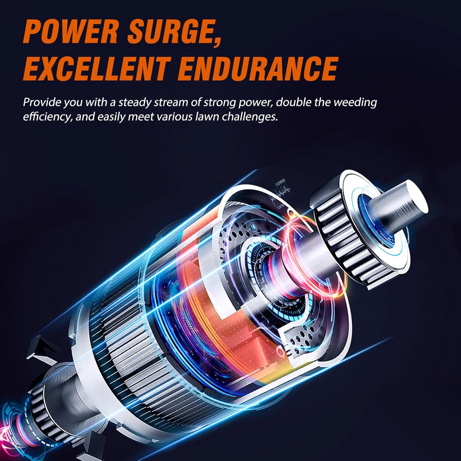 - Dual Battery Endurance: The cordless weed eater comes 2*21V 2000mAh batteries provide 2 hours runtime (1hr each), ideal for 1/2 acre lawn yards with quick-swap design