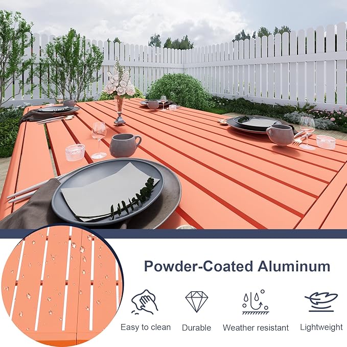 - Premium Aluminum Construction: Made from lightweight yet sturdy aluminum, this picnic table set resists rust and corrosion, ensuring it withstands various weather conditions while maintaining its elegant appearance