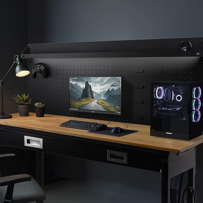 - Pegboard for Organization: A portion of the pegboard is purposely made to hang boxes, allowing you to organize all kinds of small parts. The spacious pegboard has multiple holes, perfect for neatly storing and hanging tools. The pegboard next to the outlets also has a few more rows than other tables, thus not interfering with the outlets. Keep your workspace organized and your tools easily accessible.