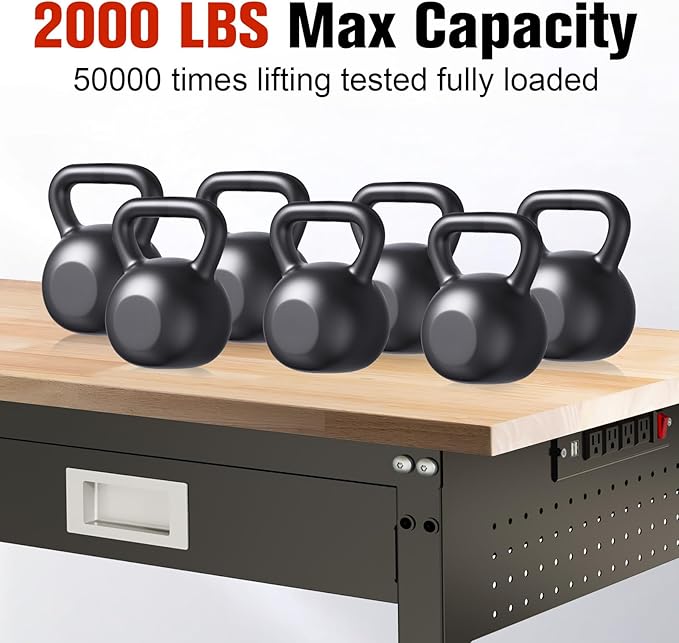 - Power Outlets and Strip Light: The workbench comes with ETL certified power outlets for added safety and durability.4 AC outlets, 2 USB ports, and a cord length of 6.6 inches, making it easy to use a variety of appliances and light fixtures. No need to search for external outlets or deal with messy cords. Comes with a strip light to help you work better in dimly lit environments.