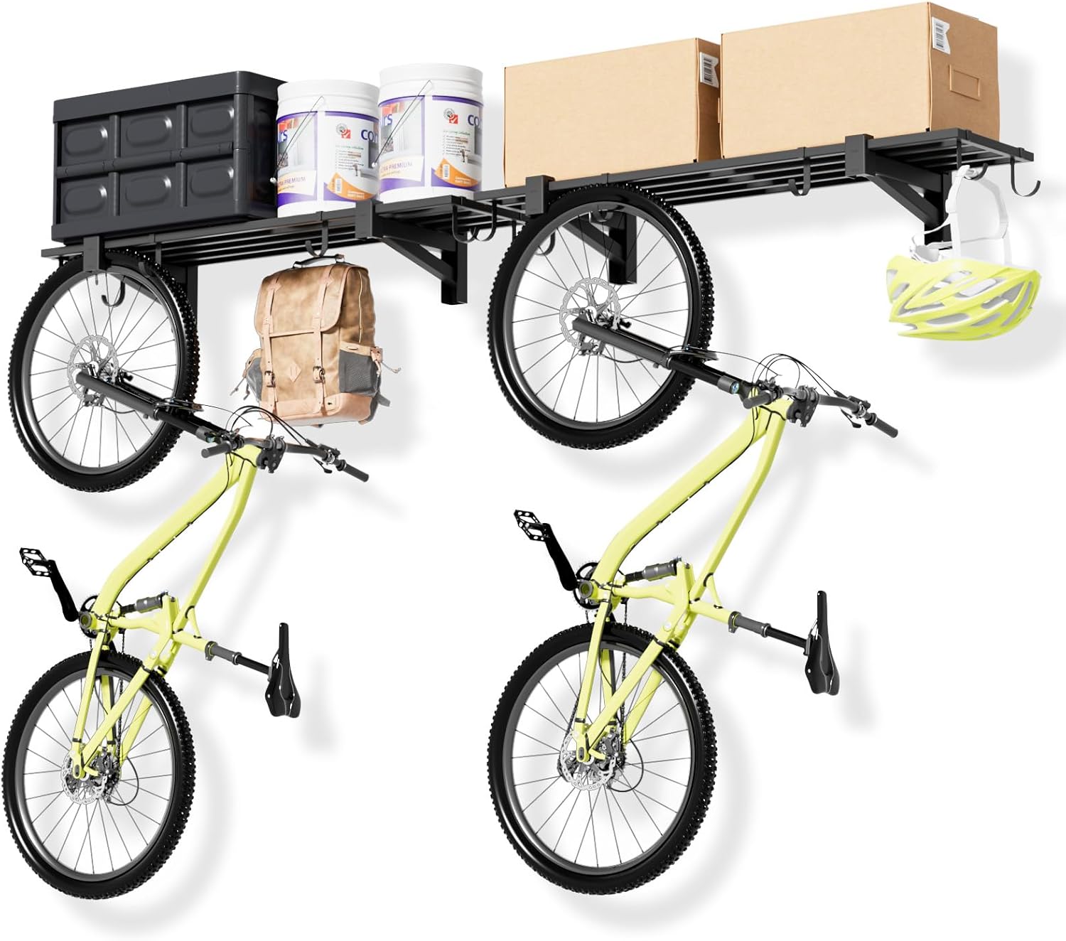 - Multiple storage functions: each garage wall mount shelf provides six hooks, which can maximize the storage function of the shelf to meet a variety of storage needs, while keeping the environment neat and tidy