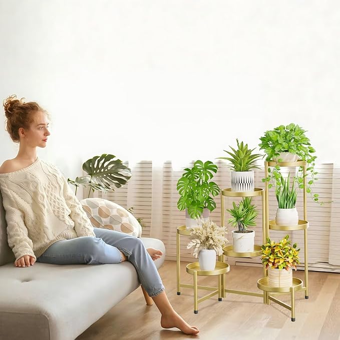 - Adjustable & Space Saving: You can adjust the metal plant stand to different angles and shapes according to your preference, making the folding plant stand perfect for displaying your beautiful potted plants! When you don't need to use it, you can fold the tall plant stands indoor completely to make it easy to move and save space